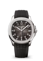 Dial Sunburst charcoal gray with black-gradient rim, embossed Aquanaut pattern, white gold applied numerals with white luminescent coating. White gold baton-style hands with white luminescent coating. Case Steel. Diameter (10-4 o'clock): 40.8 mm. Thickness: 8.1 mm. Water-resistant to 30m....