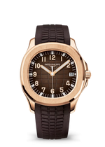 Dial Sunburst brown with black-gradient rim, embossed Aquanaut pattern, rose gold applied numerals with white luminescent coating. Rose gold baton-style hands with white luminescent coating. Case Rose gold. Diameter (10-4 o'clock): 40.8 mm. Thickness: 8.1 mm. Water-resistant to 30m....