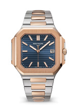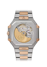 Dial Sunburst blue, horizontally embossed, rose gold applied baton-style hour markers with white luminescent coating. Rose gold rounded baton-style hands with white luminescent coating. Case Rose gold and steel. Diameter (10-4 o'clock): 45 mm. Thickness: 8.3 mm. Water-resistant to...