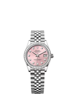 Model case Oyster, 31 mm, Oystersteel, white gold and diamonds Oyster architecture Monobloc middle case, screw-down case back and winding crown Diameter 31 mm Material White Rolesor - combination of Oystersteel and white gold Bezel...