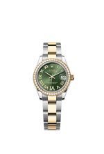 Model case Oyster, 31 mm, Oystersteel, yellow gold and diamonds Oyster architecture Monobloc middle case, screw-down case back and winding crown Diameter 31 mm Material Yellow Rolesor - combination of Oystersteel and yellow gold Bezel...